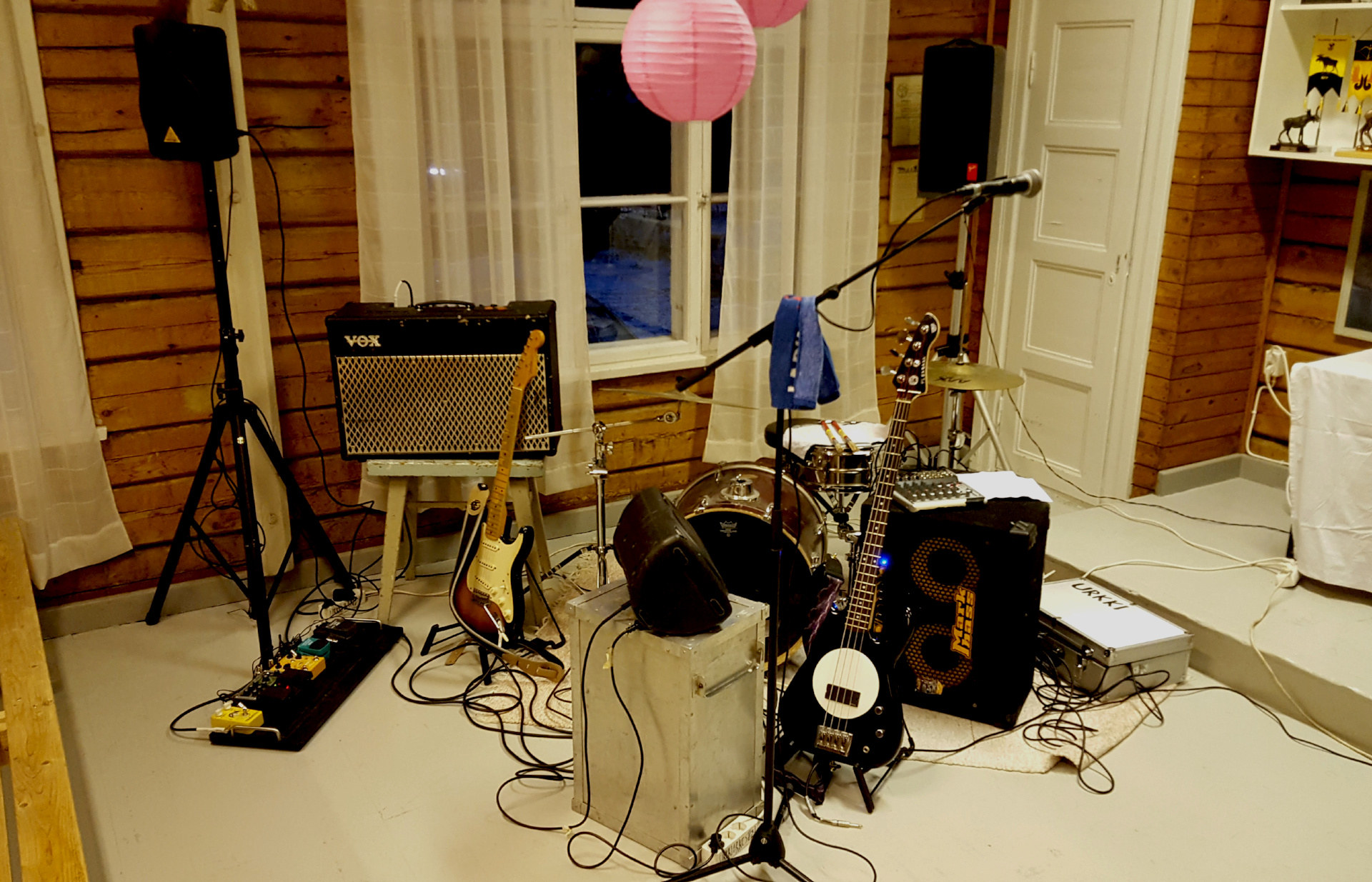 Tuossapa huimaa ja elävää audiota keikalta, ekan biisin jälkeen tuli verbaalista&viitannollista käskyä että ”pienemmälle”.. Joten sit vedettiin kanttimeiningillä loppuun asti. Kyseessähän on niin pienet kamat kuin triolla pystyy miltei vetämään: rummuissa aika minimaalinen kattaus, kitarastyrkkarina 5W huima vekotin ja bassovahvaria ei ollu ollenkaan. Kaikenlaisten rokki- ja biittikeikkojen lomassa tommoset päivätanssit antaa hieman perspektiiviä asioihin, aika etuoikeutettua touhua tuo iltakeikkailu pubeissa yms loppupeleissä on..